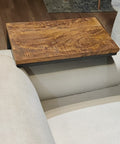 Flexibelt avlastningsbord med skiva av trä och stomme av järn. Lätt att flytta!