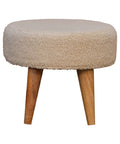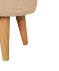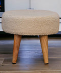 Cremefärgad pall tillverkad i mjuk, öglad, väv (bouclé). Fungerar perfekt som fotpall, extra sittplats eller dekorativ accent i vardagsrummet.