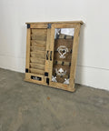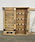 Väggskåp tillverkat av solitt mangoträ. Bakom den högra glasdörren döljer sig 12 krokar, lämpliga för nycklar. Och på vänstersidan finns gott om plats för tex kuvert och andra pappersprodukter.